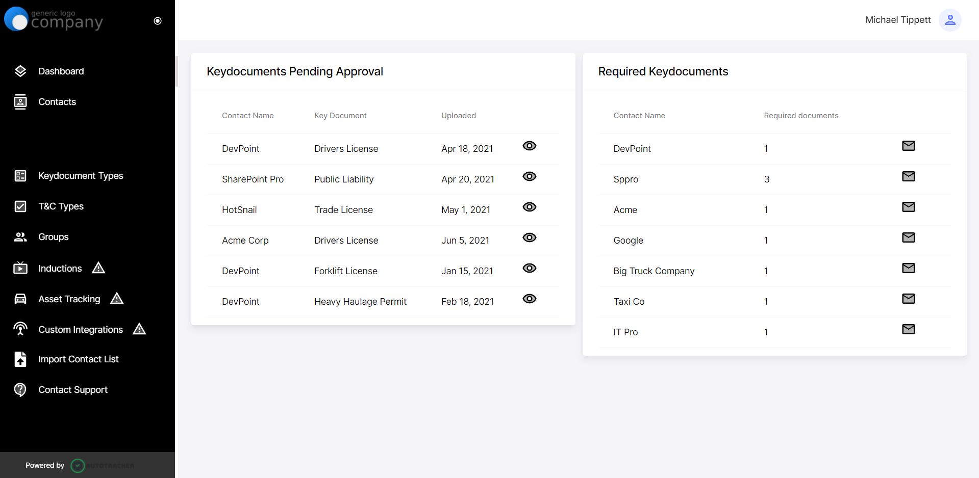 Our notification system gives you the opportunity to set up an automated prompt that notifies your contacts when they are required to upload key documents as well as when their documents are almost due for renewal.