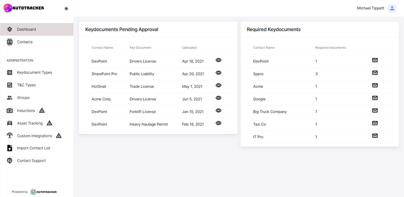Our notification system gives you the opportunity to set up an automated prompt that notifies your contacts when they are required to upload key documents as well as when their documents are almost due for renewal.